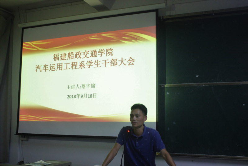 2018年9月18日,在福建船政交通職業(yè)學院北區(qū)22號樓407教室舉行了學生干部大會報告。參加報告的有汽車系教工黨員代表、16級兩委學生干部、17級全體學生干部以及18級臨時負責人。報告由汽車運用工程系黨總支書記蔡華錦主持。