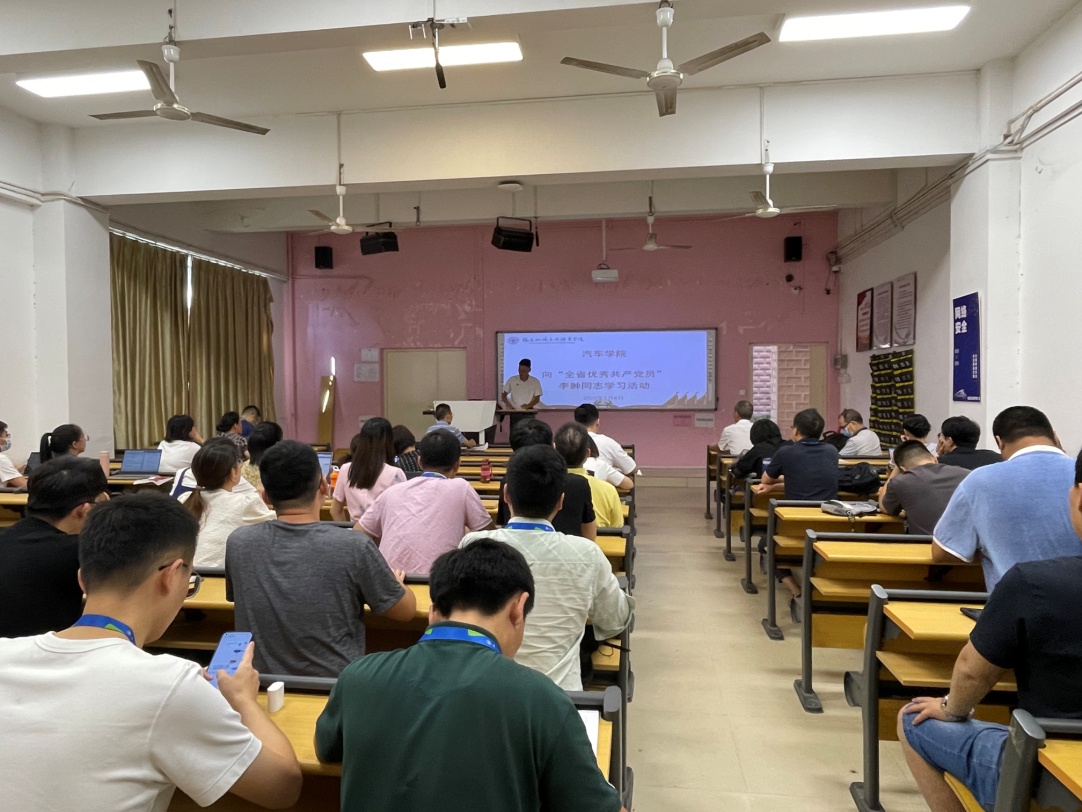 為表彰先進、弘揚正氣、激勵引導廣大黨員、教師奮進新征程、建功新時代,汽車學院于2022年7月6日在2號樓多媒體教室開展向“全省優(yōu)秀共產(chǎn)黨員”李翀同志學習活動,全體教職工參加會議,會議由蔡華錦書記主持。