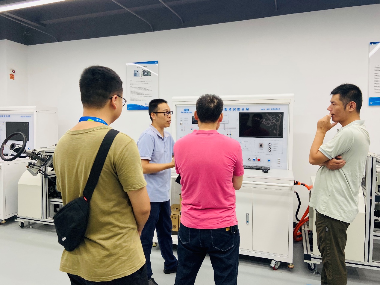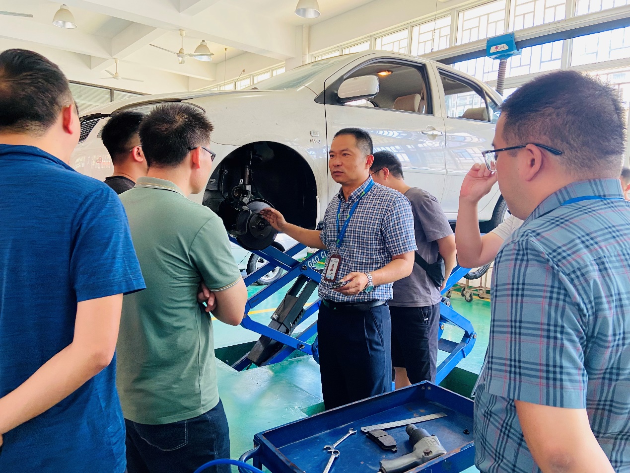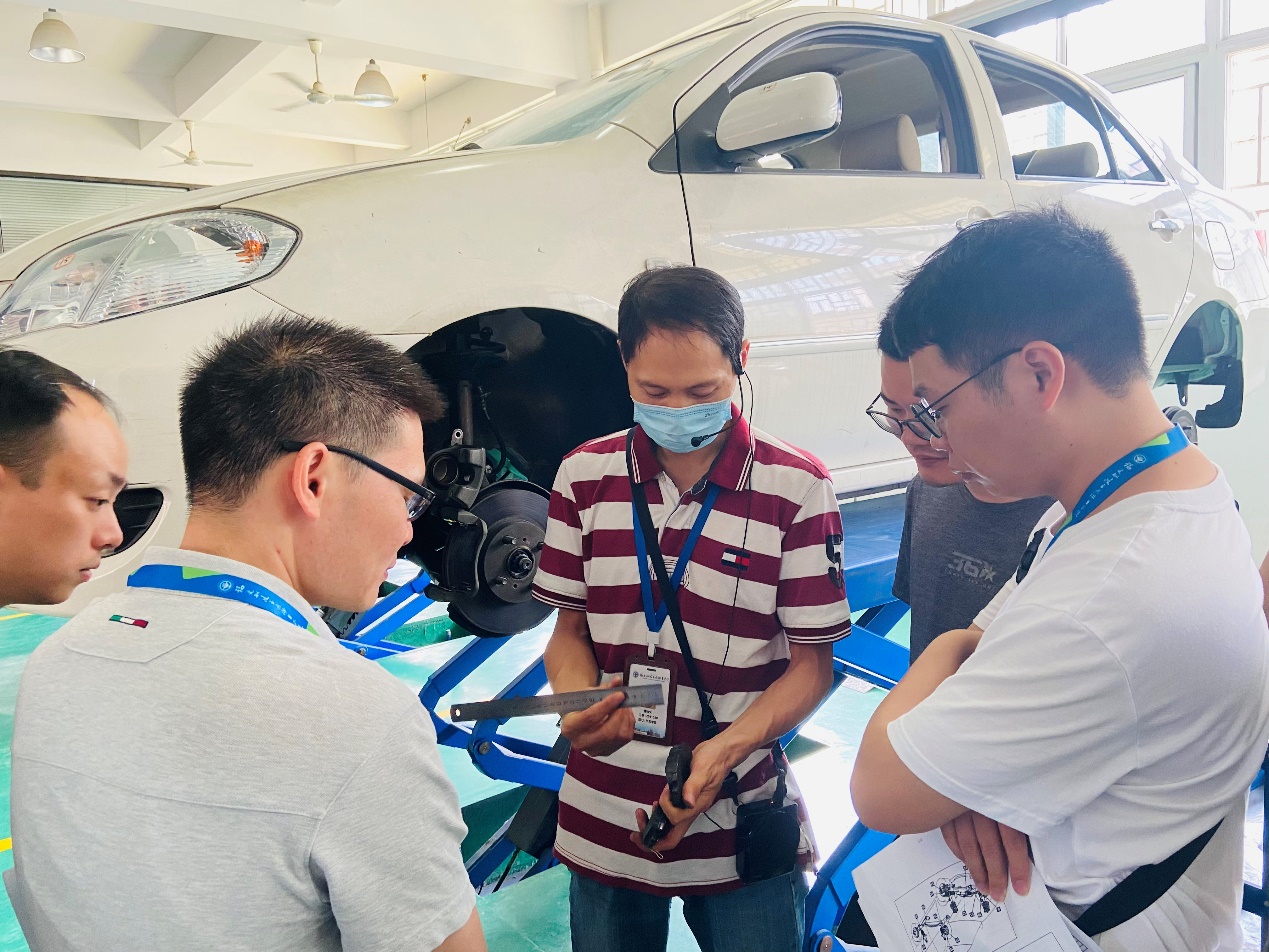 此次培訓(xùn)主要圍繞“豐田汽車(chē)四萬(wàn)公里維護(hù)項(xiàng)目實(shí)操、智能網(wǎng)聯(lián)實(shí)訓(xùn)室線(xiàn)控驅(qū)動(dòng)制動(dòng)臺(tái)架及新能源三電技術(shù)”。17-18日,主講老師帶領(lǐng)學(xué)員熟悉了豐田實(shí)訓(xùn)室的汽車(chē)維修環(huán)境和修理工具,了解汽車(chē)基本構(gòu)造與工作原理,從九個(gè)頂起位置的檢查和維護(hù)內(nèi)容展開(kāi)了詳細(xì)的介紹。24-25日,在智能網(wǎng)聯(lián)技術(shù)實(shí)訓(xùn)室和新能源技術(shù)實(shí)訓(xùn)室,主講老師分別針對(duì)線(xiàn)控驅(qū)動(dòng)制動(dòng)臺(tái)架和新能源三電技術(shù)進(jìn)行了實(shí)訓(xùn)講解。過(guò)程中,主講老師將講解示范與實(shí)際案例分析相結(jié)合,又鼓勵(lì)每位學(xué)員動(dòng)手實(shí)踐,從中總結(jié)出重點(diǎn)、難點(diǎn),充分調(diào)動(dòng)學(xué)員的主觀(guān)能動(dòng)性,在短時(shí)間讓學(xué)員們了解汽車(chē)維護(hù)關(guān)鍵技能規(guī)范化操作方法,掌握汽車(chē)故障診斷基本方法與典型故障的診斷與排除方法。
