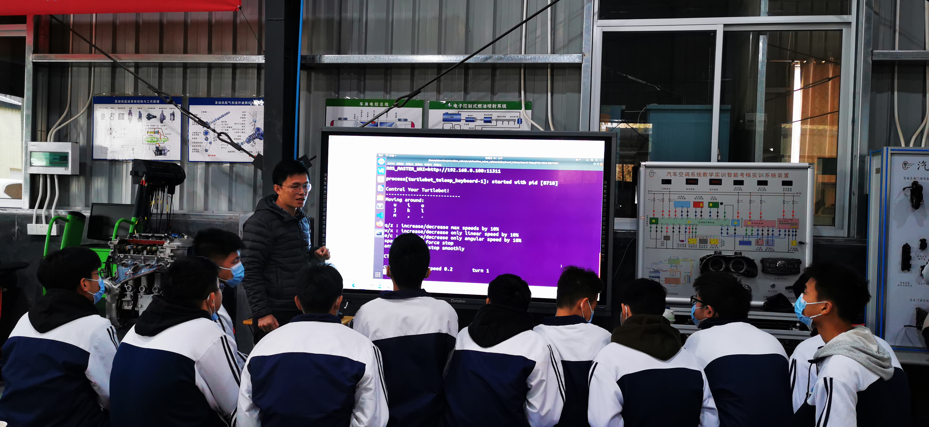 12月14日早上在福建省閩清職業(yè)中專學(xué)校,汽車學(xué)院汽車學(xué)院副院長(zhǎng)朱劍寶將實(shí)訓(xùn)耗材贈(zèng)送到汽車實(shí)訓(xùn)中心,并組織教學(xué)團(tuán)隊(duì)在汽車實(shí)訓(xùn)中心開(kāi)展現(xiàn)場(chǎng)實(shí)踐教學(xué),分為電動(dòng)助力轉(zhuǎn)向系統(tǒng)檢修、汽車保養(yǎng)維護(hù)、機(jī)器人模型制作、ROS智能小車控制、汽車電氣系統(tǒng)檢測(cè)等模塊進(jìn)行輪轉(zhuǎn)。