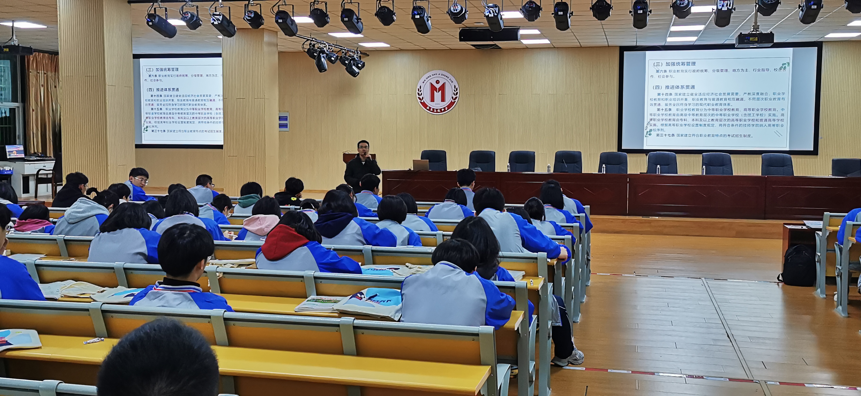 12月13日晚在閩清高級(jí)中學(xué),汽車學(xué)院副院長(zhǎng)朱劍寶以汽車學(xué)院為案例,結(jié)合新職業(yè)教育法,向同學(xué)們介紹了職業(yè)教育的新政策,明確了職業(yè)教育是與普通教育具有同等重要地位的教育類型,通過(guò)解讀福建職業(yè)教育的現(xiàn)狀與前景,鼓勵(lì)同學(xué)們通過(guò)努力,技行天下能創(chuàng)未來(lái),同樣可以擁有出彩的人生。
