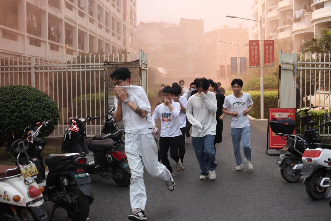 隨著警報聲響起,汽車學(xué)院全體師生聽從廣播系統(tǒng)的指引,迅速組織同學(xué)們拿毛巾浸濕,捂住口鼻,即刻快速遠(yuǎn)離著火點,彎腰低頭,有序跟隨指揮人員按疏散路線快速撤離至安全地帶。整個疏散過程急而不亂、穩(wěn)定有序,順利地完成此次消防安全疏散逃生演練活動。