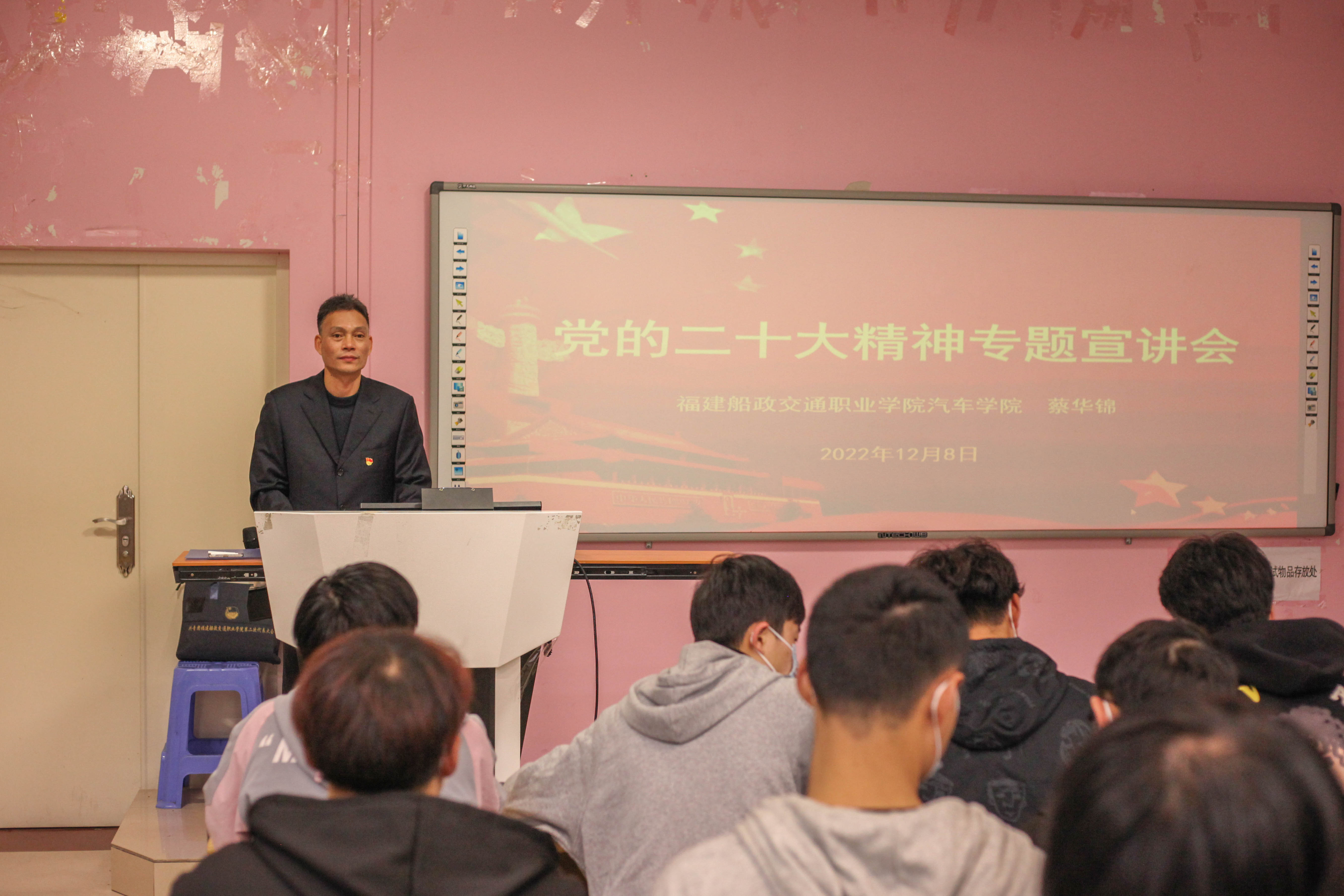 為學(xué)習(xí)宣傳黨的二十大精神,勉勵青年大學(xué)生賡續(xù)血脈、堅定理想,激揚奮進、貢獻力量,2022年12月8日汽車學(xué)院在北區(qū)2號樓1-3教室組織開展黨的二十大精神專題宣講會。本次宣講會由汽車學(xué)院黨總支書記蔡華錦主講,汽車學(xué)院學(xué)生代表現(xiàn)場聆聽。