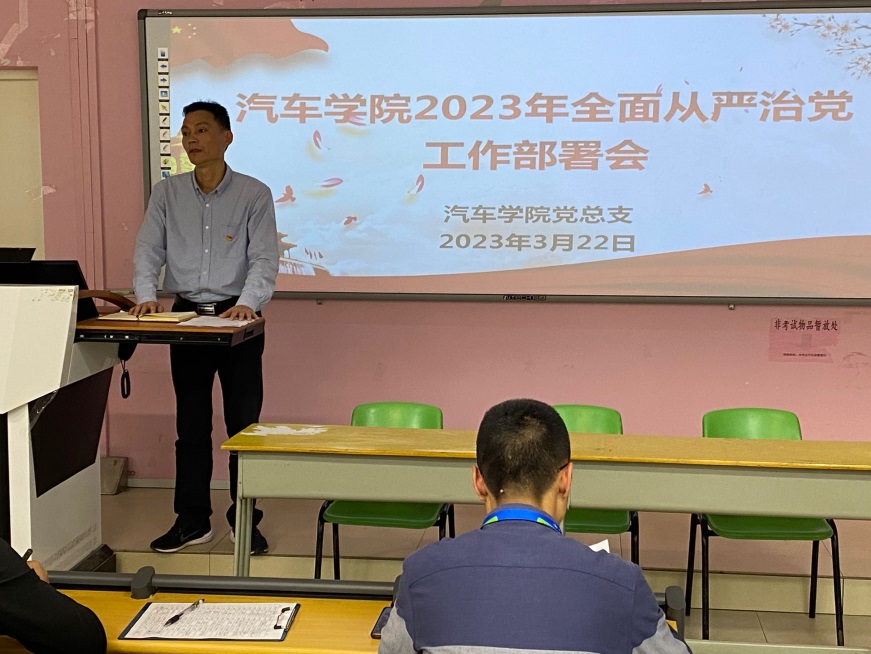 為全面貫徹黨的二十大精神,推進(jìn)全面從嚴(yán)治黨工作,3月22日下午,汽車學(xué)院在北區(qū)2號樓103教室召開2023年全面從嚴(yán)治黨工作部署會,全體教職工參會。