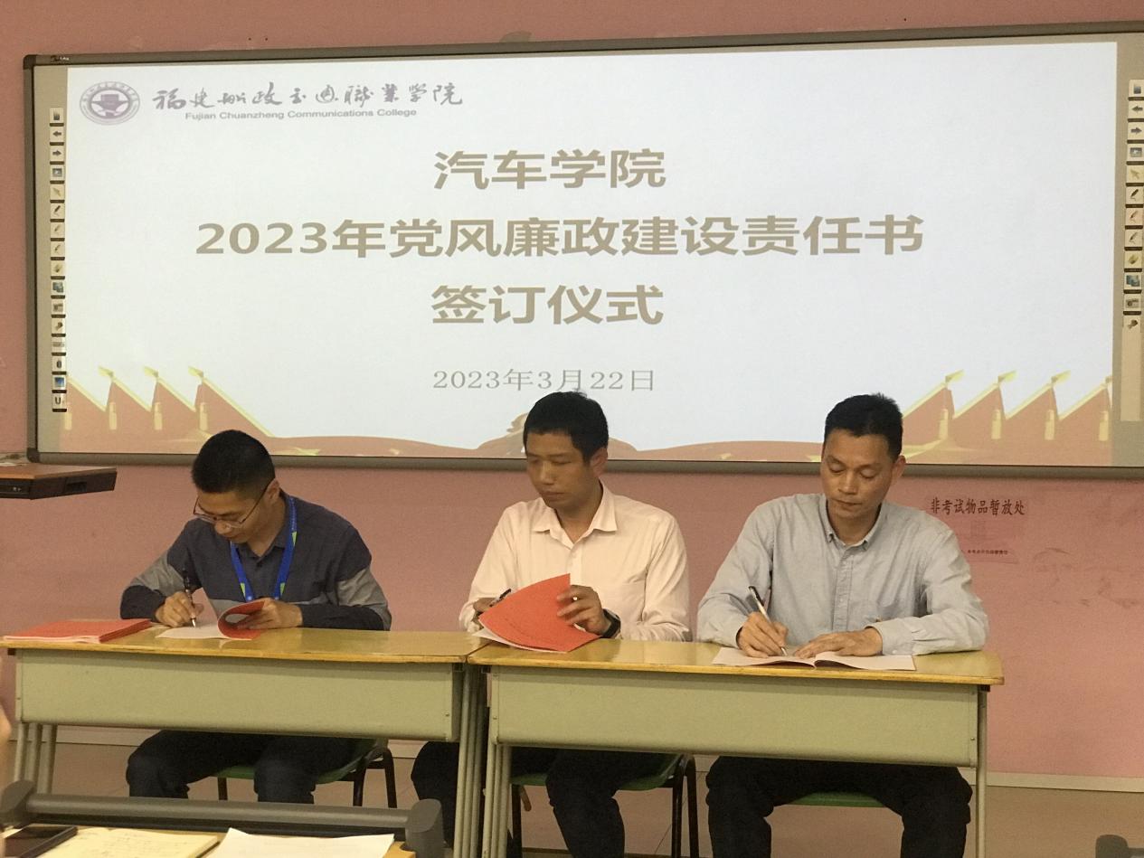 為進(jìn)一步落實黨風(fēng)廉政建設(shè)年度責(zé)任目標(biāo),學(xué)院主要領(lǐng)導(dǎo)與各教研室主任、實訓(xùn)中心主任、分團(tuán)委書記、綜辦主任分別簽訂了2023年黨風(fēng)廉政建設(shè)責(zé)任書。