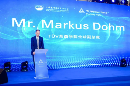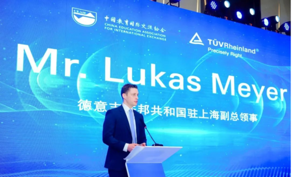中國教育國際交流協(xié)會副秘書長余有根、德國駐上海副總領事盧永勝(Lukas Meyer)、上海市教育委員會國際交流處處長周勤健、TüV萊茵學院與生命關懷全球執(zhí)行副總裁Markus Dohm、TüV萊茵學院大中華區(qū)副總裁林小霞先后在啟動儀式上致辭。
