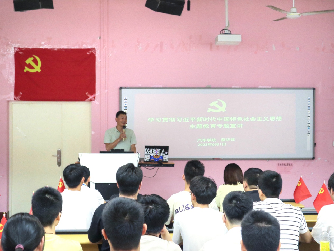 為了深入學(xué)習(xí)貫徹習(xí)近平新時代中國特色社會主義思想,進(jìn)一步推動開展學(xué)習(xí)貫徹習(xí)近平新時代中國特色社會主義思想主題教育在學(xué)院走深做實(shí), 2023年6月1日,汽車學(xué)院黨總支蔡華錦書記在自強(qiáng)樓1-3教室開展學(xué)習(xí)貫徹習(xí)近平新時代中國特色社會主義思想主題教育宣講會。輔導(dǎo)員、全體學(xué)生黨員參加宣講會。