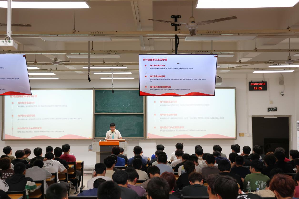 為深入學(xué)習(xí)習(xí)近平總書記關(guān)于青年工作的重要思想和黨的二十屆三中全會精神,充分發(fā)揮共青團在青年學(xué)生思想引領(lǐng)中的作用。余晨煒老師圍繞“中國共青團的歷史沿革”“共青團的使命及性質(zhì)”“青年學(xué)子如何做”等三個方面向同學(xué)們詳細地介紹了共青團。本次宣講深化了同學(xué)們對共青團的全面認(rèn)知與深刻理解,增強了團員青年的組織歸屬感和責(zé)任感,激勵廣大青年學(xué)子增強政治覺悟,堅持在深學(xué)細悟篤行上下真功、求實效,用實際行動詮釋新時代青年的責(zé)任與擔(dān)當(dāng),共同書寫屬于這一代人的輝煌篇章。