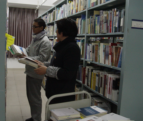 在學院“兩訪兩創(chuàng)”及“三風建設”工作如火如荼開展之際,圖書館積極緊跟學院步伐,館中黨員、年青工作人員發(fā)揮先鋒模范作用,利用每周一、周四兩個晚上、周三下午進行加班加點。帶班老師組織勤工儉學同學及義工對圖書館8樓的密集圖書進行分類整理、上架。密集圖書灰塵大、數(shù)量多,給分類、整理及上架工作帶來不小的挑戰(zhàn),但加班的師生不懼困難,他們分組有序地進行分類、調撥、打包、上架,干十足勁。