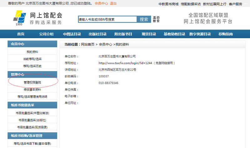 第四步:登錄以后,選書目批量選采(中圖分類)或(出版社)