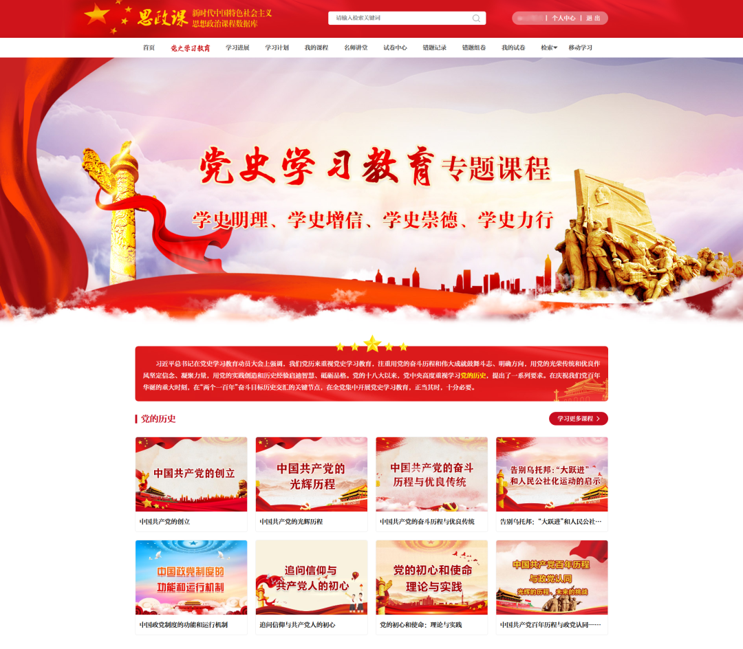 在“思政課”數(shù)據(jù)庫內(nèi)學習“黨史學習教育專題課程”并答卷自測練習,積累“競賽積分”。