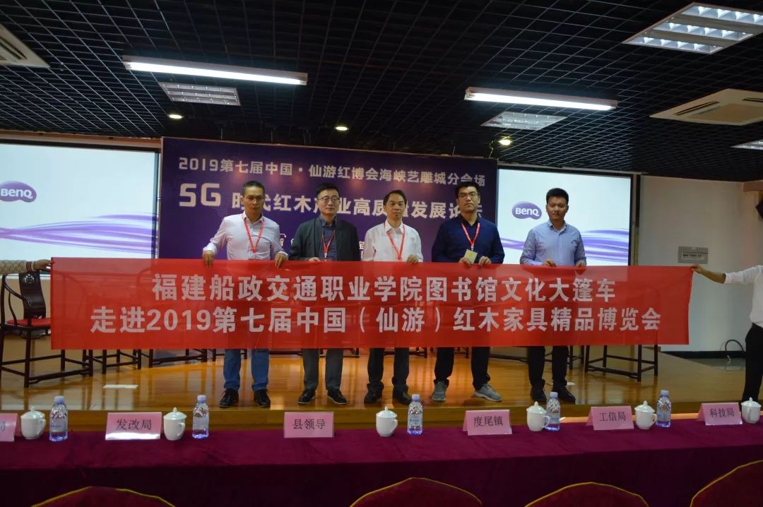 10月29日上午,2019第七屆中國(仙游)紅木家具精品博覽會海峽藝雕城分會場“智創(chuàng)聚變·探寶未來 —— 5G時代紅木產(chǎn)業(yè)高質(zhì)量發(fā)展論壇峰會高質(zhì)量發(fā)展論壇,在莆田仙游度尾海峽藝雕旅游城召開,我院圖書館文化大篷車特邀專家福建師范大學(xué)教授韋樟清、藍泰華,福建船政交通職業(yè)學(xué)院副教授陳樂天、吳章光走進該論壇。幾位專家在論壇中,深入探討5G時代下紅木產(chǎn)業(yè)的轉(zhuǎn)型升級發(fā)展。百余位紅木及電商從業(yè)人士共同參會。