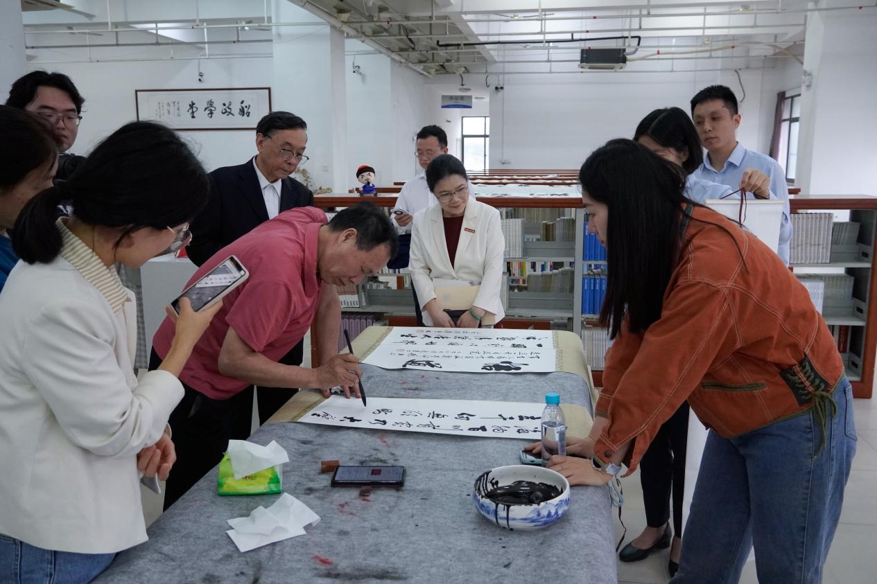 本次活動還特別邀請了國家一級美術(shù)師、林則徐書畫院院長徐天春先生,及國內(nèi)十位知名書畫家齊聚一堂,在圖書館舉行“紀(jì)念林則徐誕辰240周年”暨“世界讀書日”特別行動——林則徐名言佳句書法筆會。學(xué)院黨委書記陳宜大、院長陳群與各位領(lǐng)導(dǎo)、嘉賓、現(xiàn)場師生共同見證了這場藝術(shù)與精神的雙重盛宴。