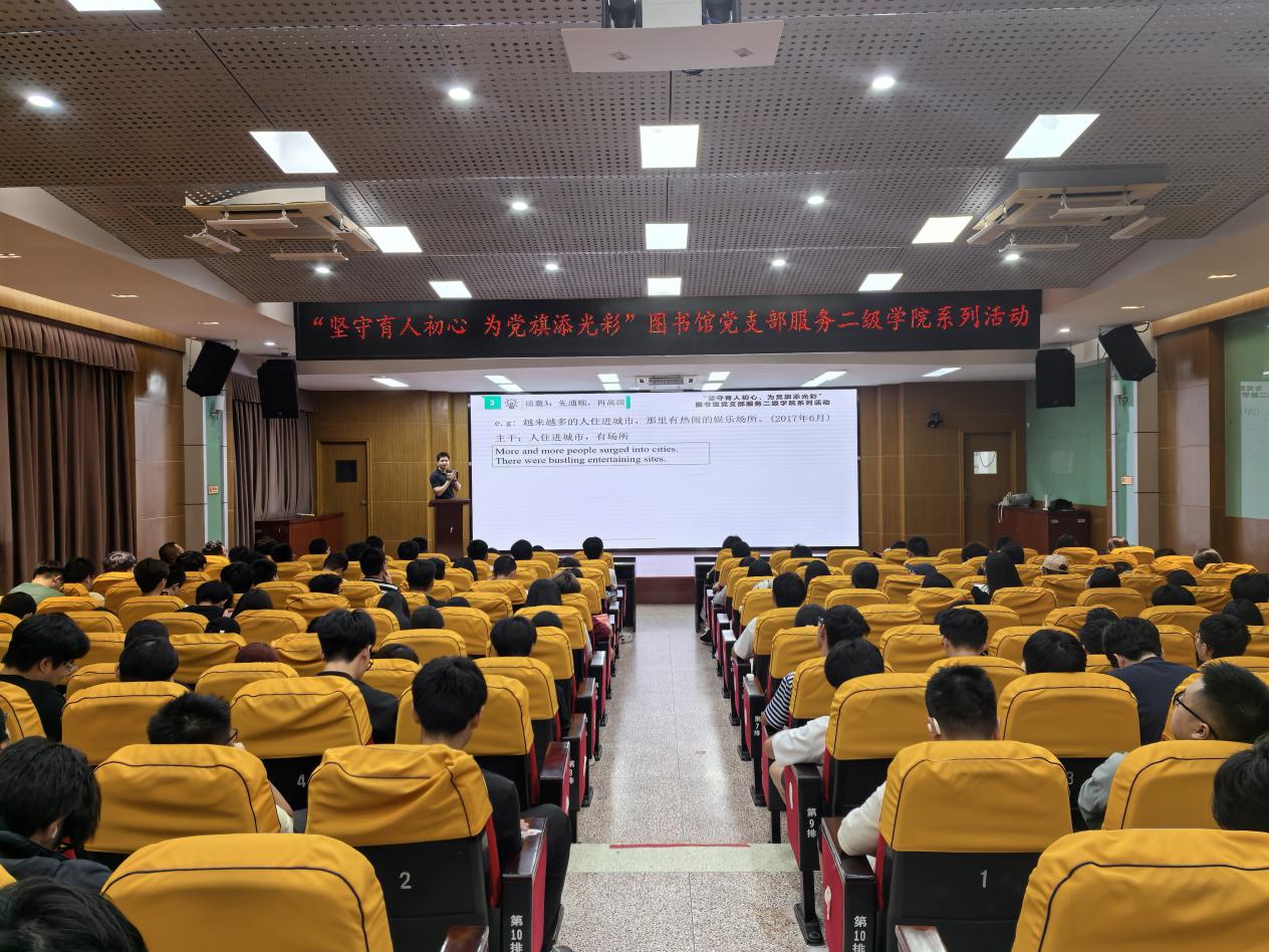 為了幫助同學們更好地應對即將到來的英語四六級考試,提高同學們的英語應試能力和綜合英語水平。5月22日,圖書館黨支部特邀請黃培星老師給同學們作了以“大學英語四六級備考指導講座”為主題的講座,報名此次英語四六級考試的200多名同學到場聆聽了講座。