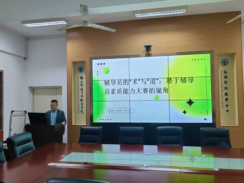 為加強(qiáng)我院輔導(dǎo)員隊(duì)伍建設(shè),提升新入職教師的職業(yè)素養(yǎng)與工作能力,2025年11月18日下午在自強(qiáng)樓2-1教室舉辦《淺談?shì)o導(dǎo)員的“術(shù)”與“道”:基于輔導(dǎo)員素質(zhì)能力大賽的視角》專題講座,特邀福建師范大學(xué)校團(tuán)委副書記、學(xué)工部副部長(zhǎng)樂(lè)有方擔(dān)任主講嘉賓。