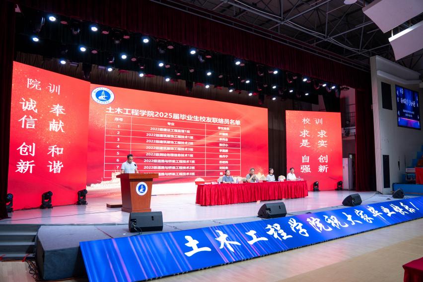 2025年6月10日,土木工程學(xué)院在福道園文體中心舉行2025屆畢業(yè)生畢業(yè)典禮。作為典禮重要環(huán)節(jié),土木工程專業(yè)委員會(huì)正式聘任22名2025屆畢業(yè)生擔(dān)任校友聯(lián)絡(luò)員,建立校友與母校的常態(tài)化聯(lián)絡(luò)機(jī)制。