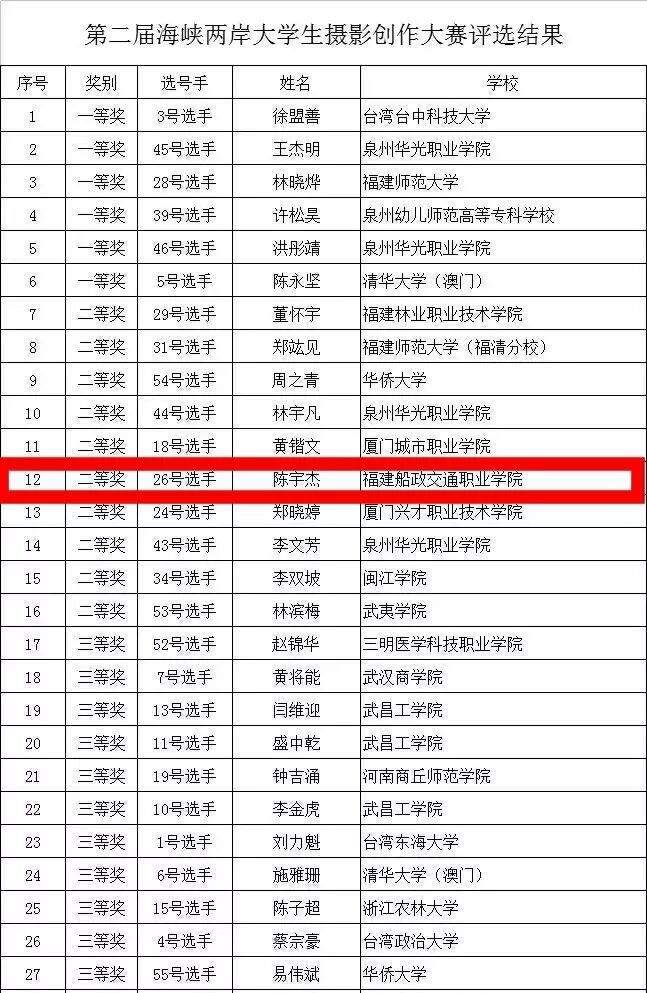 最終,徐盟善等6位同學(xué)得到評委團一致認(rèn)可,榮獲本次大賽的一等獎;陳宇杰等10位同學(xué)獲得二等獎;趙錦華等20位同學(xué)獲得三等獎;林吳悠等19位同學(xué)獲得優(yōu)秀獎。