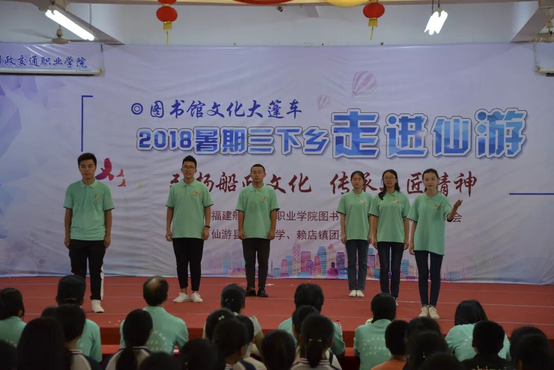2018年暑期,圖書館依托 “文化大篷車”項目,組成教育關(guān)愛服務(wù)團“三下鄉(xiāng)”服務(wù)隊,帶著我院師生的愛心,將滿滿的暖意傳遞到仙游縣市民中。