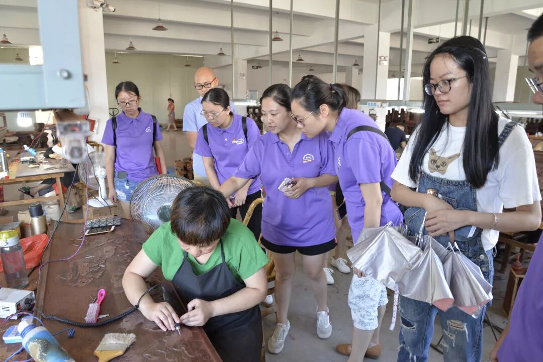 7月9日,服務(wù)團走進仙游縣皇冠古典家具有限公司,該公司主營古典家具 , 木雕工藝品生產(chǎn)以及銷售。成員們參觀了該企業(yè)的展廳,了解各種木雕工藝品以及家具的情況,并且走進了該公司的生產(chǎn)車間,開展真人圖書分享,與生產(chǎn)車間木雕工匠面對面近距離接觸,與木雕工藝師傅交流傳承傳統(tǒng)技能心得。