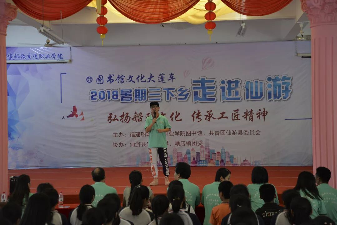 7月6日下午,福建船政交通職業(yè)學(xué)院圖書館“教育關(guān)愛服務(wù)團”2018年暑期“三下鄉(xiāng)”實踐活動,在莆田仙游華僑中學(xué)正式拉開了帷幕。華僑中學(xué)200余名學(xué)生,及當(dāng)?shù)亓羰貎和煌瑓⒓印?/p>