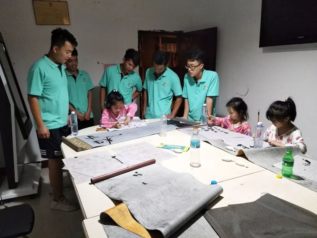 在10日上午,我系三下鄉(xiāng)團(tuán)隊(duì)為嵩口古鎮(zhèn)的青少年們組織開(kāi)展了弘揚(yáng)中國(guó)傳統(tǒng)文化知識(shí)的課程,展開(kāi)了關(guān)于書(shū)法的學(xué)習(xí)、象棋和圍棋的對(duì)弈等有趣交流。