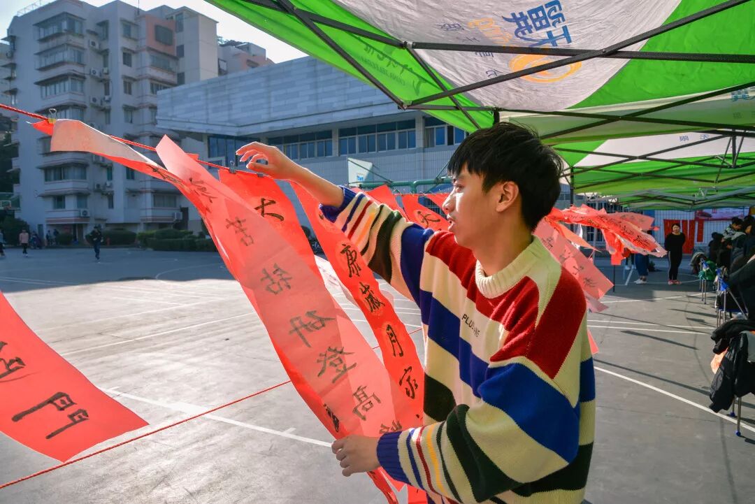 “飛揚(yáng)的紅,肆意的墨,構(gòu)成最誠(chéng)摯的愿景”。在改革開放40周年之際,也是學(xué)校152周年之際,為倡導(dǎo)“為人民謀幸福,為大眾做貢獻(xiàn)”的精神。2018年12月26號(hào)下午,校團(tuán)委船媒中心在文體中心前舉辦“‘聯(lián)’動(dòng)師生迎元春,祈簽送福滿交院”主題活動(dòng)。