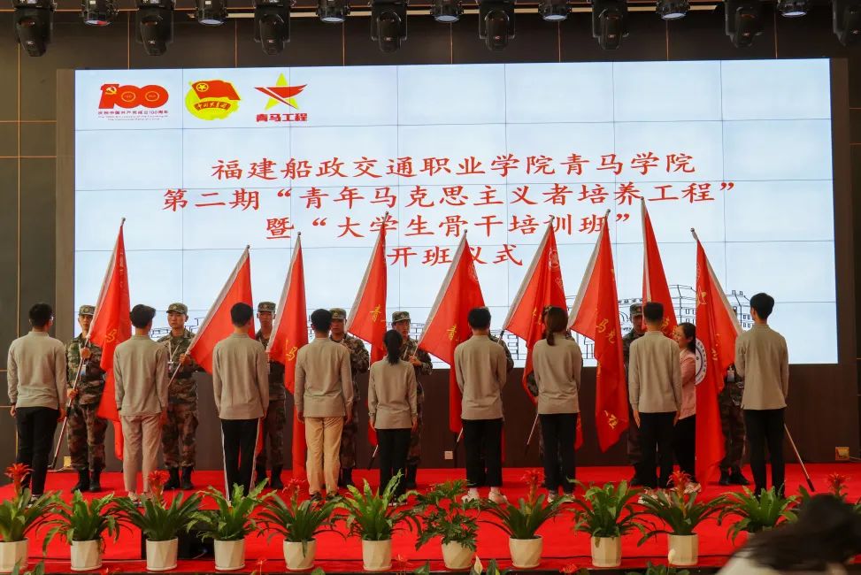為深入學(xué)習(xí)貫徹習(xí)近平新時(shí)代中國特色社會(huì)主義思想和習(xí)近平總書記關(guān)于青年工作重要論述,貫徹落實(shí)《中長期青年發(fā)展規(guī)劃(2016—2025年)》和《關(guān)于深入實(shí)施青年馬克思主義者培養(yǎng)工程的意見》, 進(jìn)一步強(qiáng)化青年思想政治引領(lǐng),進(jìn)一步推動(dòng)“學(xué)黨史、強(qiáng)信念、跟黨走”學(xué)習(xí)教育活動(dòng)走深走實(shí),為黨培養(yǎng)和輸送更多信仰堅(jiān)定、能力突出、素質(zhì)優(yōu)良、作風(fēng)過硬的青年政治骨干,2021年5月1日,福建船政交通職業(yè)學(xué)院青馬學(xué)院第二期“青年馬克思主義者培養(yǎng)工程”暨“大學(xué)生骨干培訓(xùn)班”在我校武夷職教園正式開班。