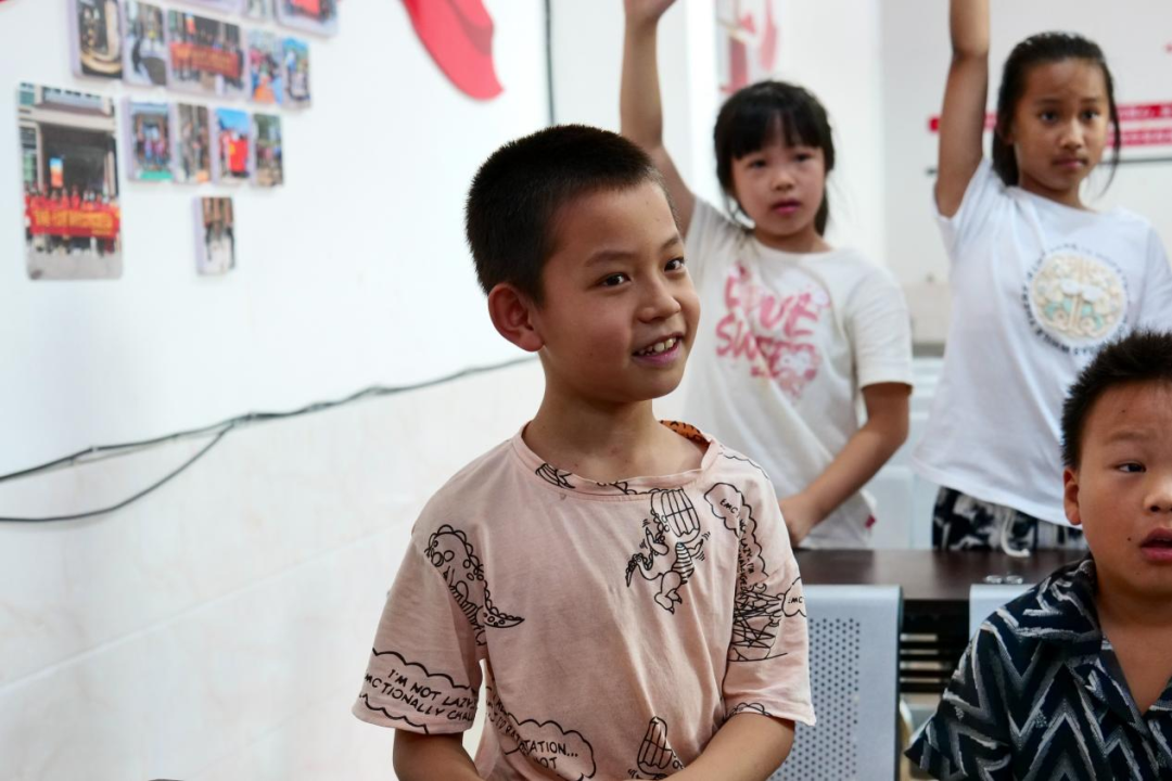活動(dòng)期間,隊(duì)員們以一場(chǎng)“數(shù)字傳聲筒”破冰小游戲拉開(kāi)序幕。游戲瞬間點(diǎn)燃了現(xiàn)場(chǎng)氣氛,引發(fā)了小朋友們的熱情,也迅速拉近了隊(duì)員與小朋友們的距離。原本稍顯拘謹(jǐn)?shù)男∨笥褌冎饾u放松下來(lái),與隊(duì)隊(duì)員融入一片。隨后,活動(dòng)重心聚焦于溪源村極具特色的油茶非遺文化,隊(duì)員們圍繞油茶的制作工藝、生產(chǎn)流程、茶油作用,以及家鄉(xiāng)非遺項(xiàng)目等內(nèi)容,與小朋友們展開(kāi)了一場(chǎng)既有深度又有溫度的交流。過(guò)程中,隊(duì)員們鼓勵(lì)小朋友們積極提問(wèn)、大膽發(fā)言,引導(dǎo)他們主動(dòng)思考本土文化,在輕松愉快的氛圍中,小朋友們對(duì)家鄉(xiāng)文化的認(rèn)知不再停留于表面,而是逐漸深入理解其獨(dú)特內(nèi)涵與魅力,同時(shí)也增強(qiáng)了小朋友們對(duì)家鄉(xiāng)文化的認(rèn)同感和自豪感。