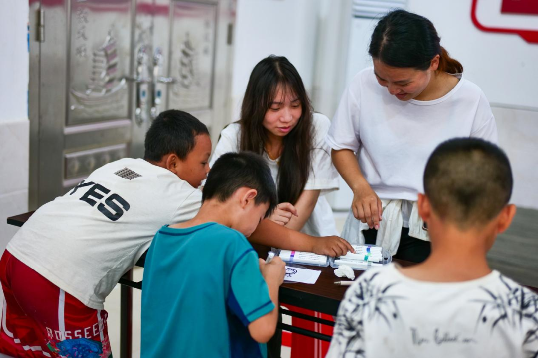 圖為實(shí)踐團(tuán)在三溪鄉(xiāng)溪源村開(kāi)展課堂活動(dòng)的畫(huà)面