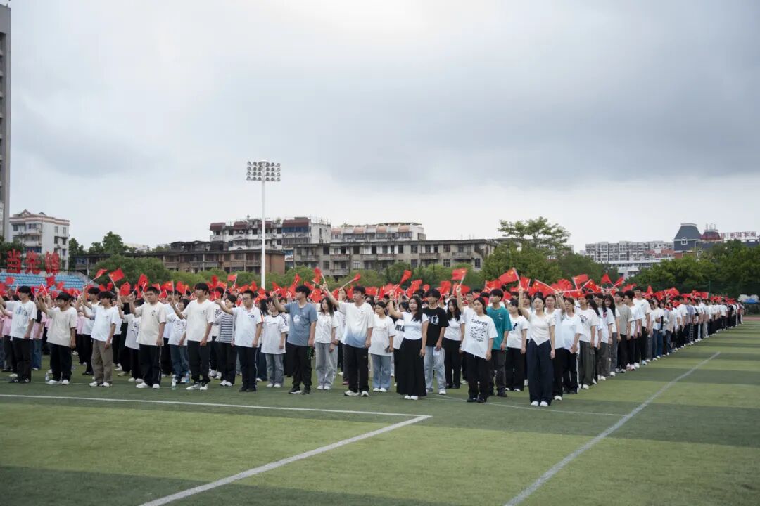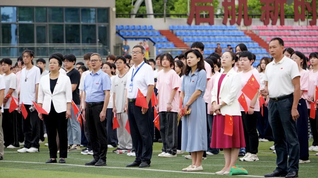 國(guó)歌余韻尚在校園回蕩,師生們已高舉國(guó)旗,將滿腔熱忱化作鏗鏘吶喊:“青春為中國(guó)式現(xiàn)代化挺膺擔(dān)當(dāng),強(qiáng)國(guó)復(fù)興有我!強(qiáng)國(guó)復(fù)興有我!強(qiáng)國(guó)復(fù)興有我!” 嘹亮的口號(hào),既是對(duì)祖國(guó)的深情告白,更將復(fù)興征程上的青春誓言,牢牢鐫刻在晨光里、心底間。